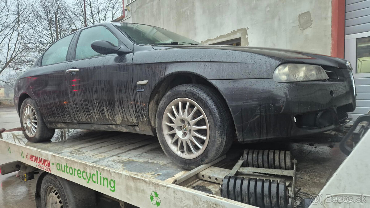 Rozpredám Alfa Romeo 156 1,9JTD 85kw, kód motora: 937A2000, rok výroby 2004, na náhradné diely, motor, prevodovka, súčasti motora ako alternátor, klímakompresor, štartér, spojka, riadenie, ABS, karosárske diely ako kapota, maska, svetlá, dvere, blatníky, nárazník, dvere, kufrové dvere, dverové zámky, nápravy, poloosy, kolesá, atď...