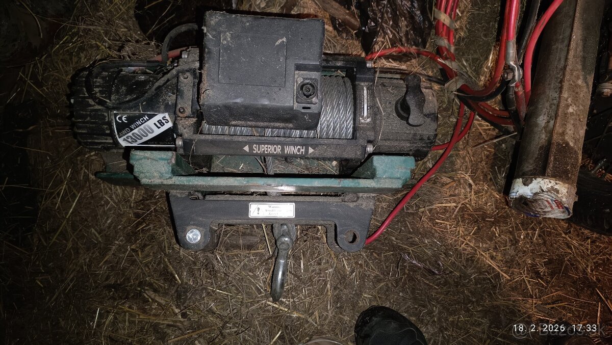 13000 LB. 5900 kg. Navijak je prikruteny na nočnom profile I. Čiže sa dá hocikde upevniť. Navijak má kábel aj DO .