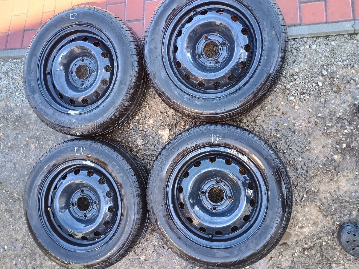 Predám sadu (4ks) letných pneu na plechových diskoch. Vzor cca 6.5mm, rozostup otvorov 4x108. Vhodné napr. pre Cit. C3, Peugeot 206 a iné.