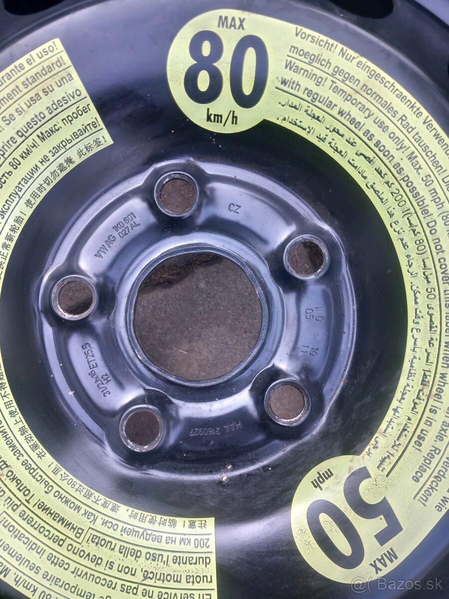 Predám tenkú dojazdovú rezervu nepoužitú, T125/70 R16 ET 25,5