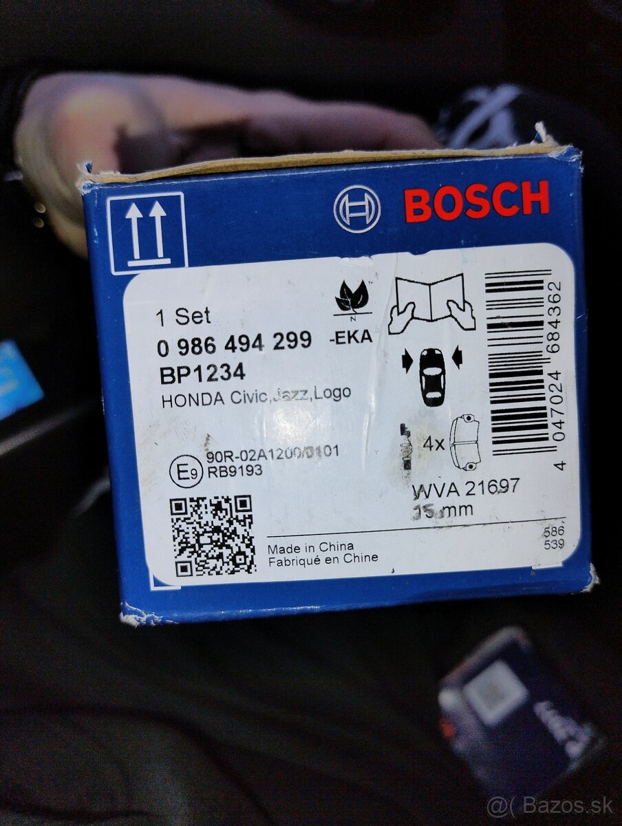 Brzdové doštičky 4ks ná prednú nápravu BOSCH WVA 21697 15mm; Olejový filter BOSCH P7077