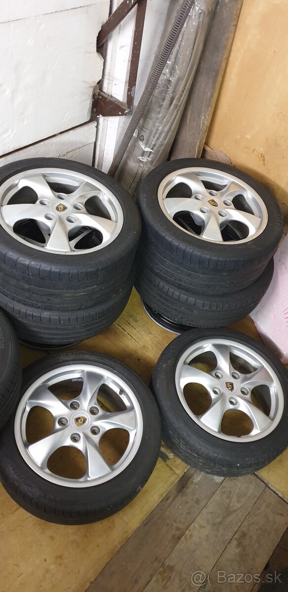 Predam sadu zliatinovych diskov orginal Porsche 17 palcové dvojrozmer šírka 7J Et55 a 8.5 Et48 obute na zodratych letnych pneu, disky sú v krásnom orginálnom stave bez poškodení...