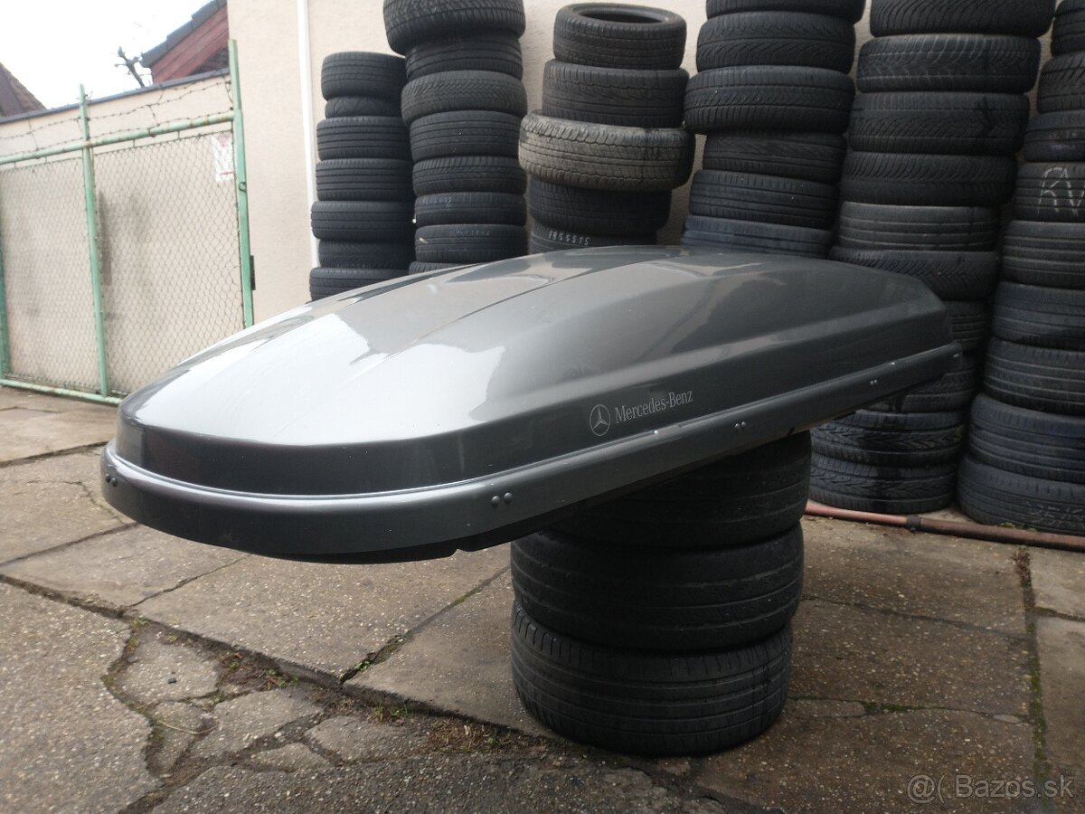Predam uzamykatelny stresny box mercedes benz. Vonkajsie rozmery dlzka 205cm, sirka 80cm. Uchytenie na nosice pomocou t-drazok. Cena 270 euro