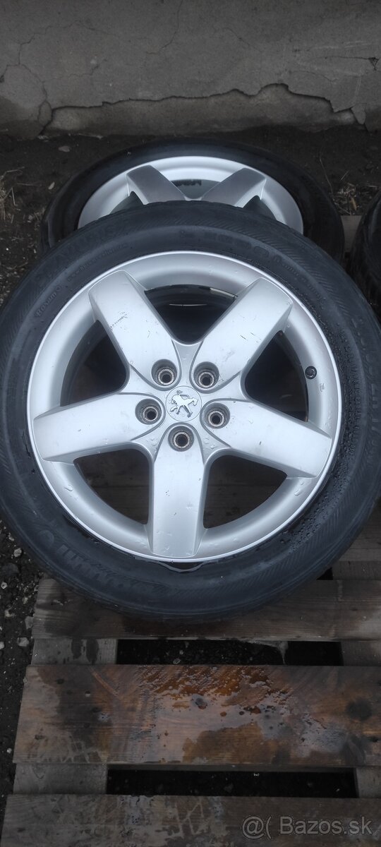 Gumy 215/55R17 dezén minimálne na jednu sezónu. Kolesá boli poumývané a natreté prípravkom na gumy,boli založené na Peugeote.