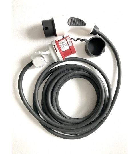 Nabíjací 400V kábel s možnosťou voľby prúdu pomocou LED v rozsahu 6A - 32A. Riadiaca jednotka sa nachádza priamo v koncovke TYPE 2.