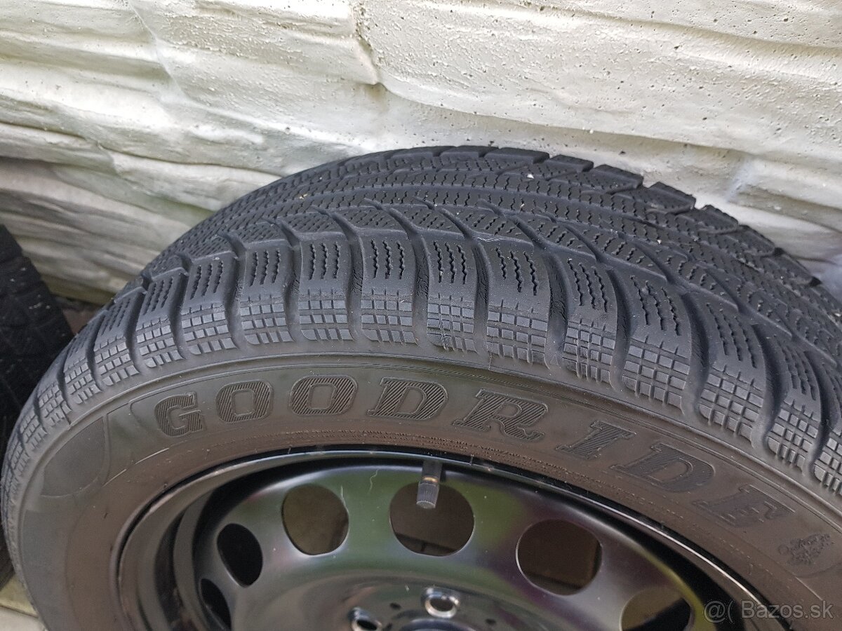 Predám zánovné zimné pneumatiky zn. Goodride + plechové disky rozmer 205/55 R16 aj s puklicami viď foto. Komplety sú vyvážené. Dezen 5,5cm, r.2016