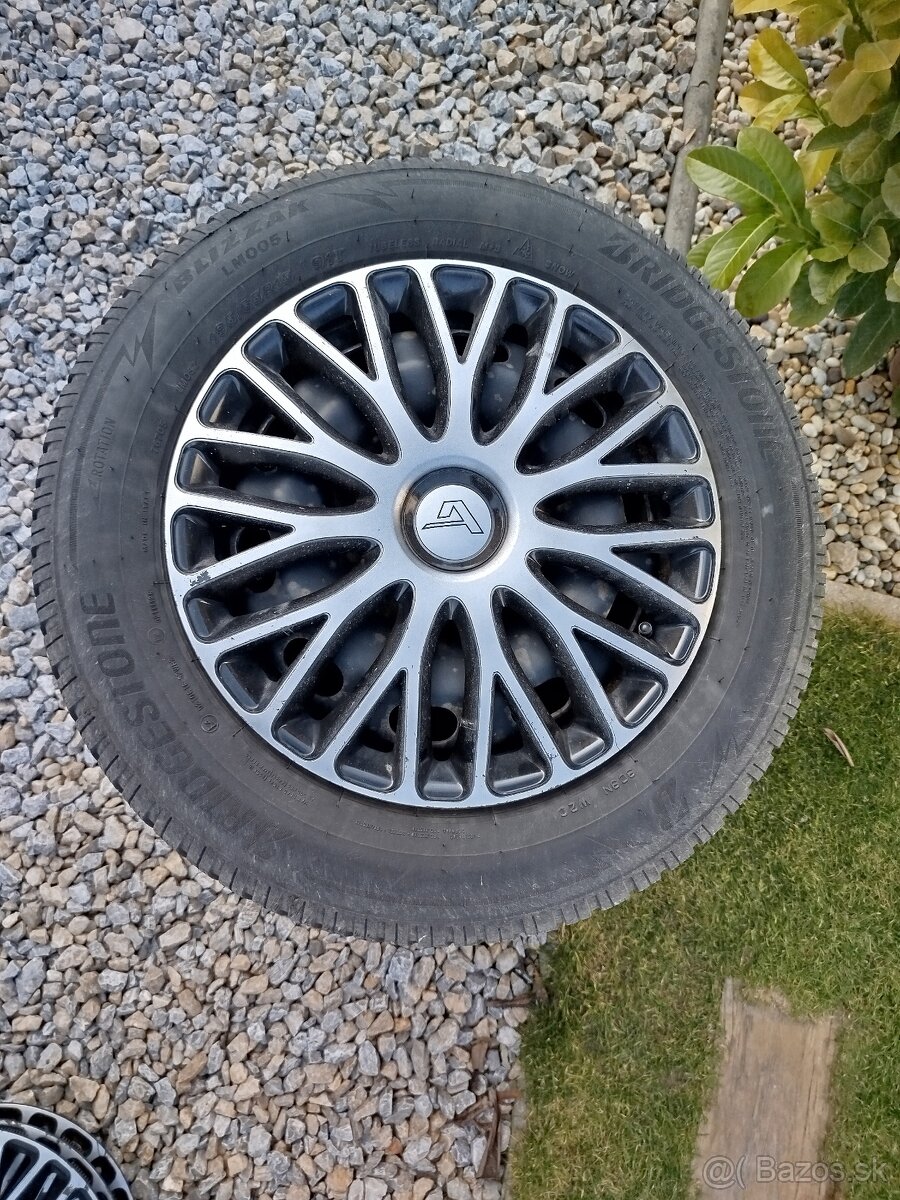 Predám 4ks zimné pneumatiky Zn. Bridgestone Blizzak rozmery 195x65 R15 na plechových diskoch s puklicami