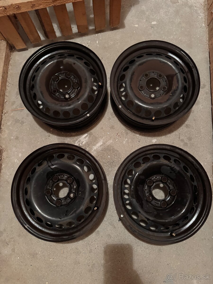 Plechové disky R15, 5x112 6Jx15H2 ET47. Boli na tom obuté pneu 185/65 R15.