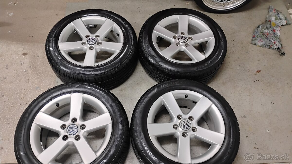 Predam elektrony vw 5x112 r16 sirka 7j et37 stredova diera 57,1mm,obute letne pneu 205/55 r16 matador hectora3 dot0920 hlbka dezenu cca6mm vyvazene staci nahodit na auto cena 250e