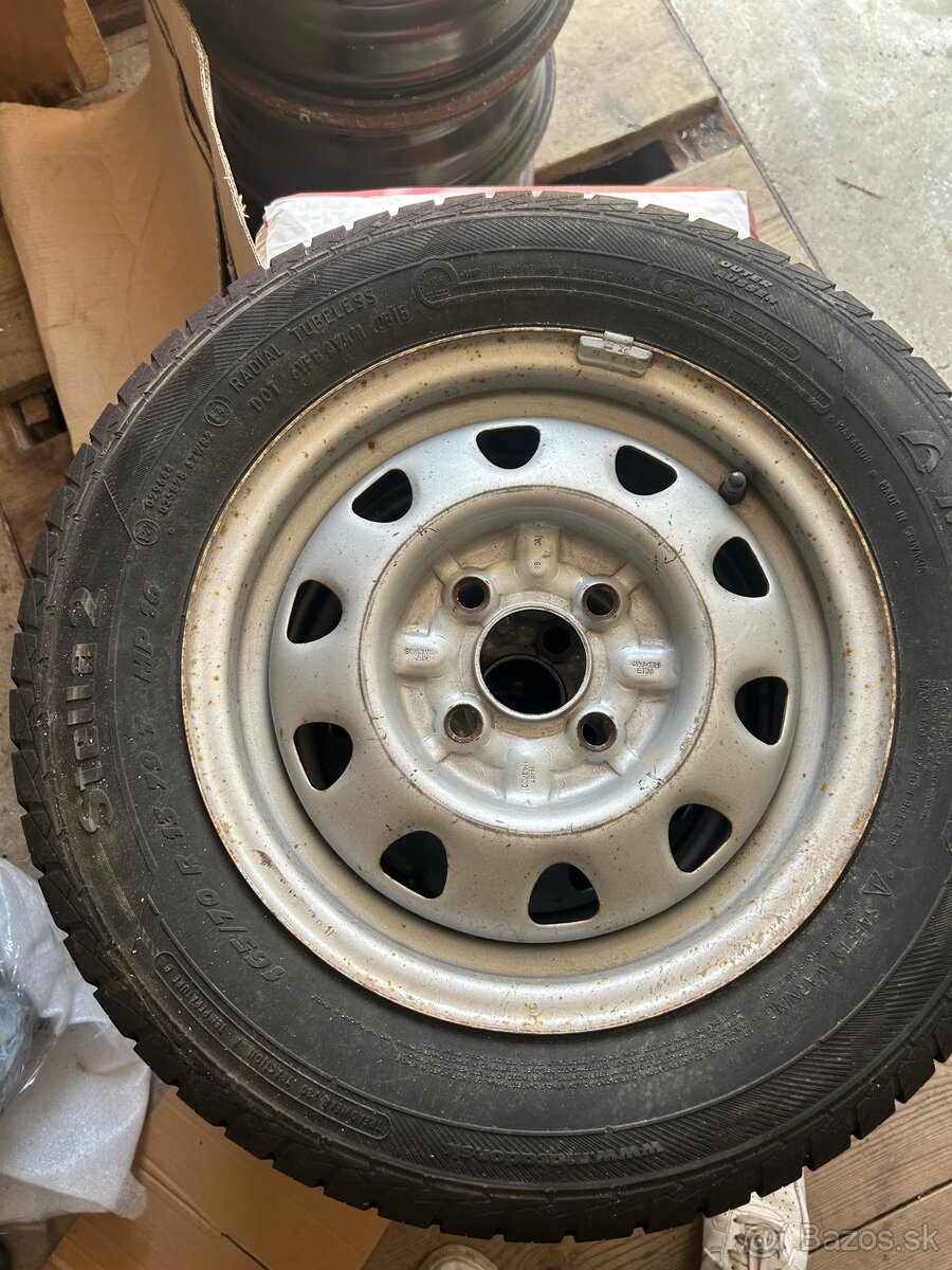 Plechové disky z felície , pneu Matador 165/70 R13 , pneumatiky majú dezén 6-6,5mm , cena 30€/komplet