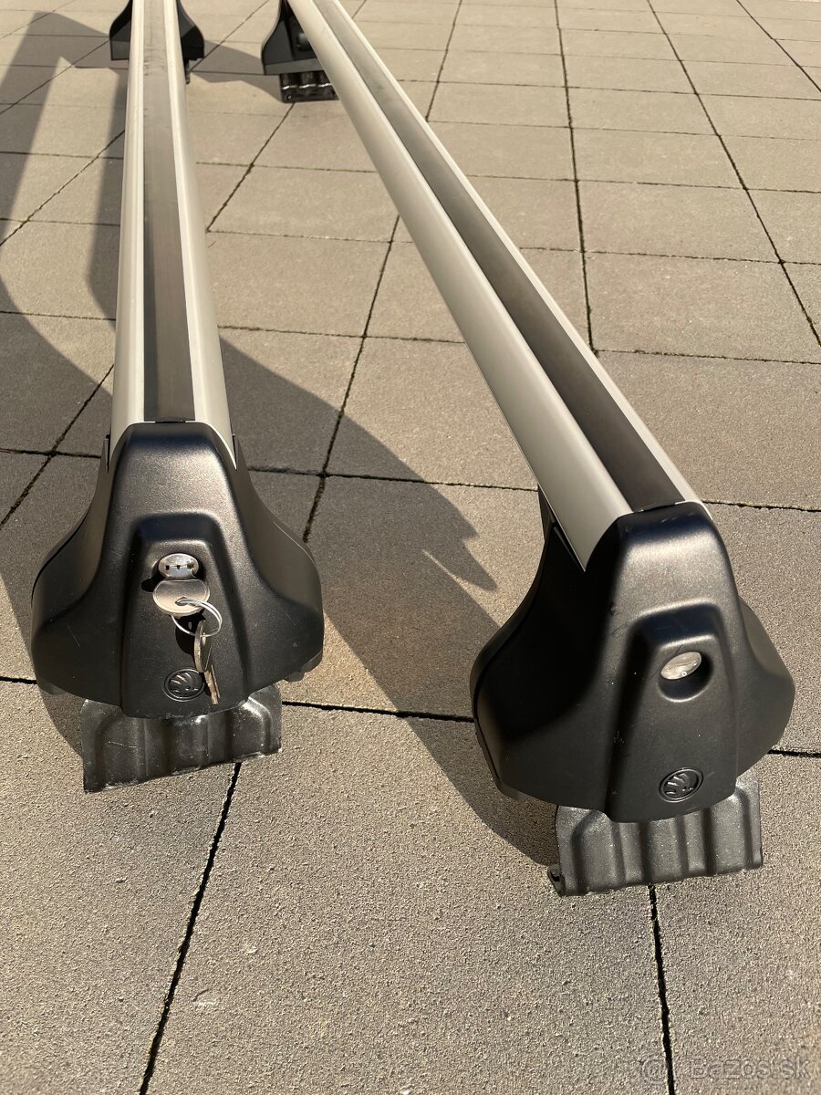Predám originálne strešné nosiče na Škoda Superb sedan. Ľahká montáž. Originál 2ks kľúče.