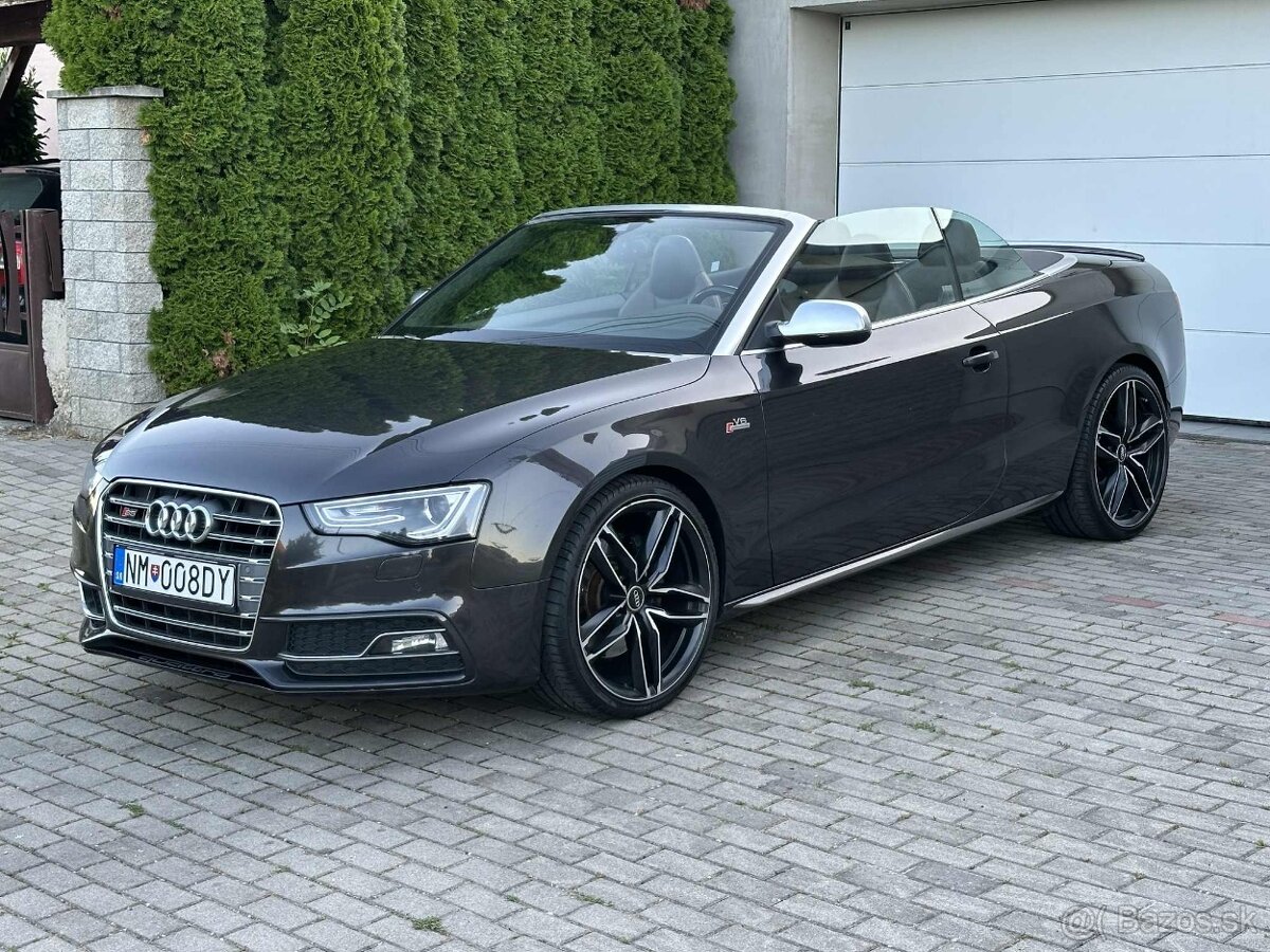Predám Audi S5 V6 3.0 TFSI quattro Kabriolet, S tronic, Rok výroby 5/2012, Prevodovka 7-st. automatická, 2995 cm3, 245kW (333 PS), 128 000 km, 4x4, 2 dv. (4 miesta), šedá metelíza, VIN WAUZZZ8F7CN013004, Servisná knižka, Možný odpočet DPH, EBD/EBV, Posilňovač riadenia, ABS, ESP, ASR (TC), DSC (DTC), Isofix, Deaktivácia airbagov, Systém kontroly tlaku v pneumatikách (TPMS), Centrálne zamykanie, Parkovacia kamera, Rádio + CD + MP3, El. predné + zadné okná, Klimatizácia automatická, Elektrické sedadlá, Elektrické zrkadlá, Diaľkové ovládanie zamykania, Multifunkčný volant, Lakťová opierka, Ostrekovače svetlometov, Welcome light, Bezkľúčové otváranie dverí a štartovanie, Bi-Xenónové svetlomety, Parkovacie senzory vzadu a vpredu, Hliníkové disky, Hmlovky, Imobilizér, Palubný počítač, Navigačný systém, Kožený interiér, Vyhrievané zrkadlá, Dažďový senzor, Svetelný senzor, Stop&start systém, Vyhrievané predné sedadlá, Zadné sedadlá delené a sklopné, Airbag pre vodica a spolujazdca, Centrálne zamykanie s dialkovým ovládaním a oddeleným uzamykaním batožinového priestoru, Stlpik volantu nastavitelný v dvoch smeroch, S-line športový podvozok, Zadný spoiler, Determálne sklá, Elektromechanická rucná brzda, bočné prahové lišty v športovom dizajne, Integrálny systém opierok hlavy, Spätné zrkadlá elektricky nastavitelné a vyhrievané, Nárazníky v športovom dizajne a difúzor vzadu, Denné svietenie na báze LED, Kryty spätných zrkadiel hliníkové, Bočné airbagy vpredu, Elektricky nastavitelné predné sedadlá s el. nastavitelnými bedernými opierkami v čierno hnedej kombinácí kože, Multifunkcný športový kožený volant 3-ramenný s funkciou radenia F1, S-športový podvozok.