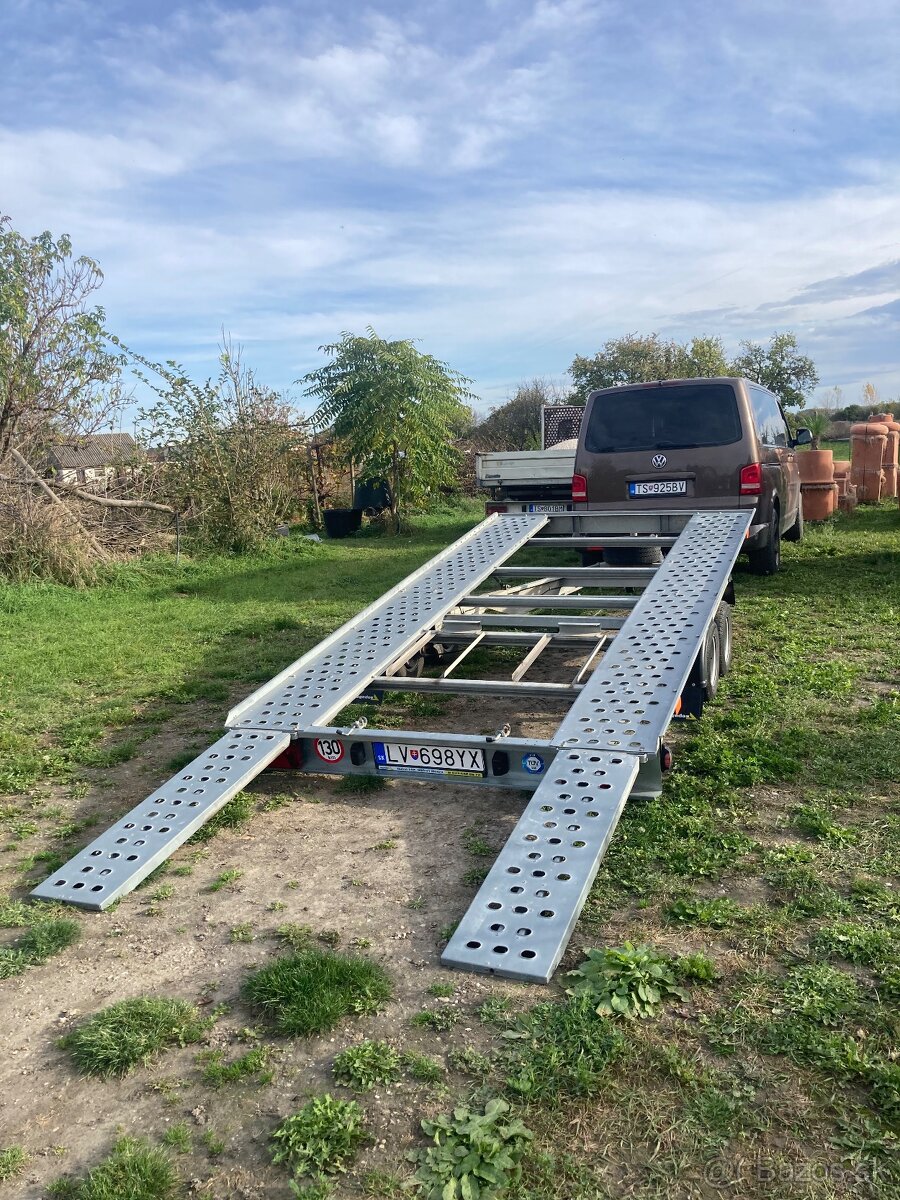 Predam dvojnápravový sklápací vozík Agados Alfa, r.v. 2020, celková váha 2700kg, vlastná váha podľa papierov 550kg, rezerva a naviják su odkrútené, takze vlastná váha 500kg. Vozík som použival málo, už ho nepotrebujem. Žiadna korózia, nikdy nejazdil v soli, ani v severnych okresoch, brzdy 100%, nové gumy, rozmer 195/55 R10, dlzka 5.5m, rozmery loznej plochy sú 4044x2005mm. Vozik za autom ani nepčuť, perfektne drží aj keď je zaťažený. Diaľničná ešte pol roka platná. Sú k nemu aj zaisťovacie rampy, popripade 4 nové gurtne original na upevnenie kolies.