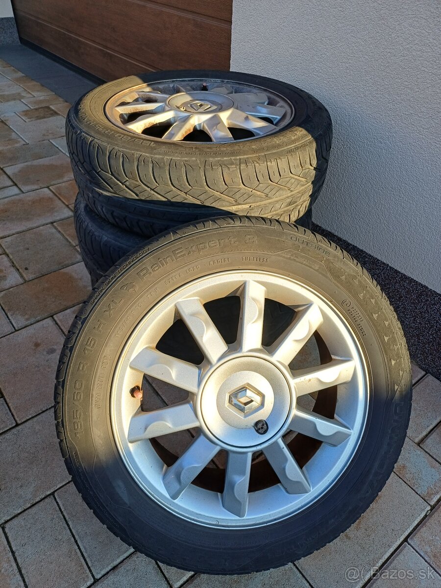 Predám letnú sadu pneumatik na Renault-Dacia letné pneumatiky Uniroyal rozmer 185/60R15 hrúbka dezénu 6mm Hliníkové disky 6Jx15 4x100 cena 100€