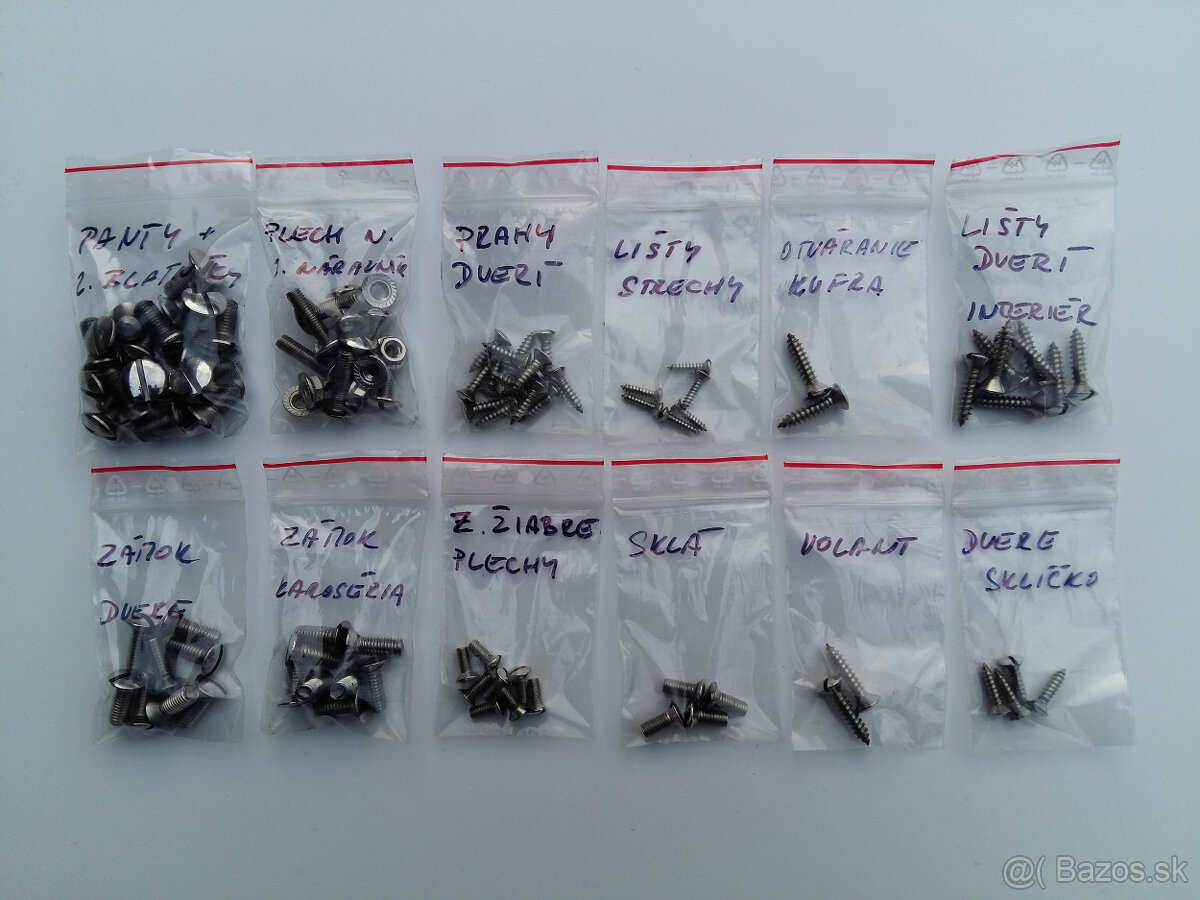Predám sadu skrutiek na škodu 110r z leštenej nereze. V ponuke máme aj šesťhranné skrutky M7, kontrolky, vruty do interiéru a matice stieračov.