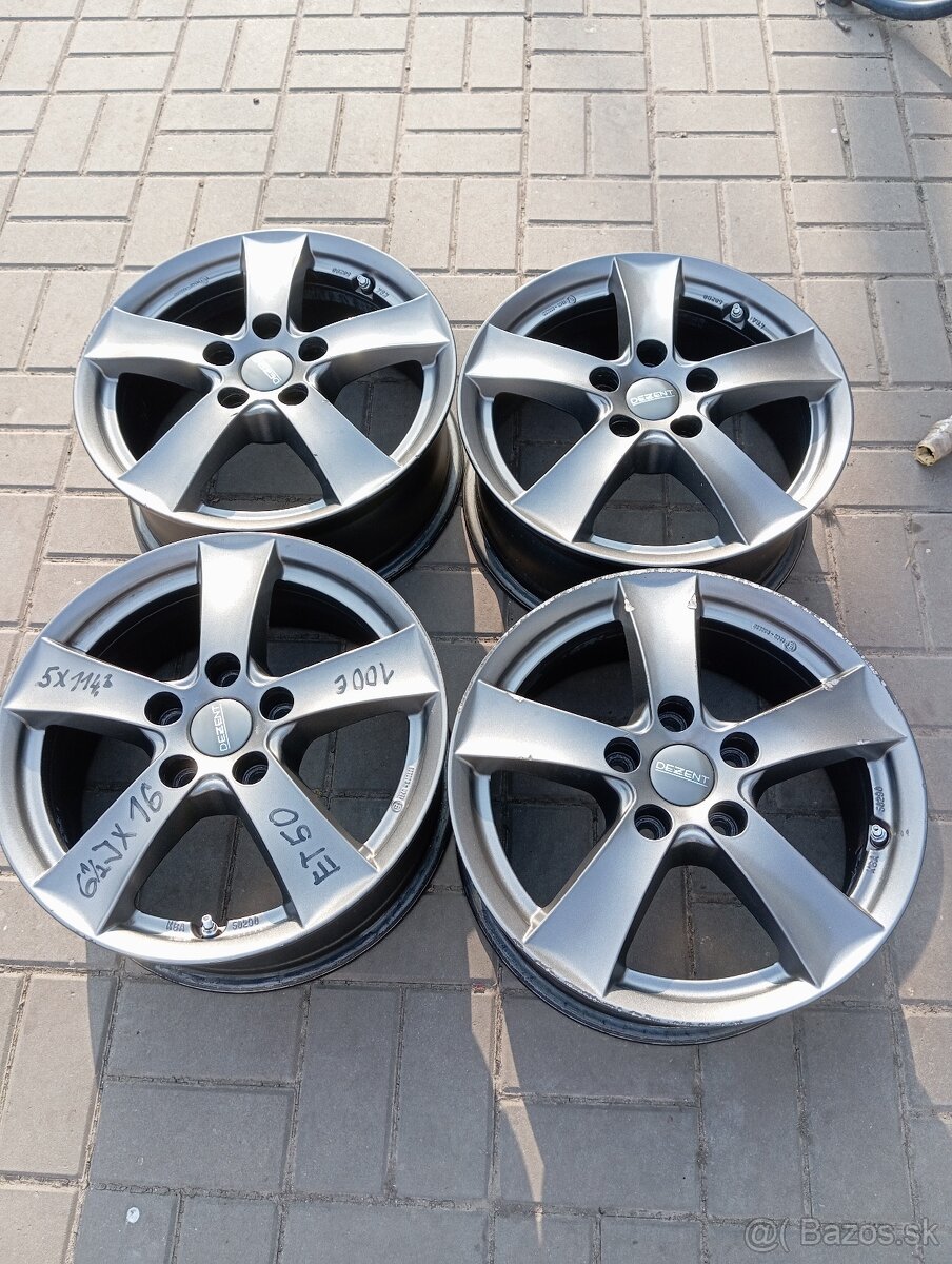 Predám 4ks Elektróny originál Dezent 6,5Jx16 Made in Germany, disky sú rovné nezvarane pôvodný lak drobné škrabance sa nájdu no nič vážne.Pasuju na Mazda Kia Honda Hyundai Mitsubishi Renault Dacia Chraisler Suzuki a iné autá s touto roztecou.Maju aj snímače tlaku, viď foto.Moznost výberu rôznych rozmerov pneumatík zimné letné možnosť prezutia vyváženie kolies a montáž na vaše auto.Uvedena cena je za 4ks Elektróny.Len osobný odber bývam Gbely okres Skalica.Cena pevná.