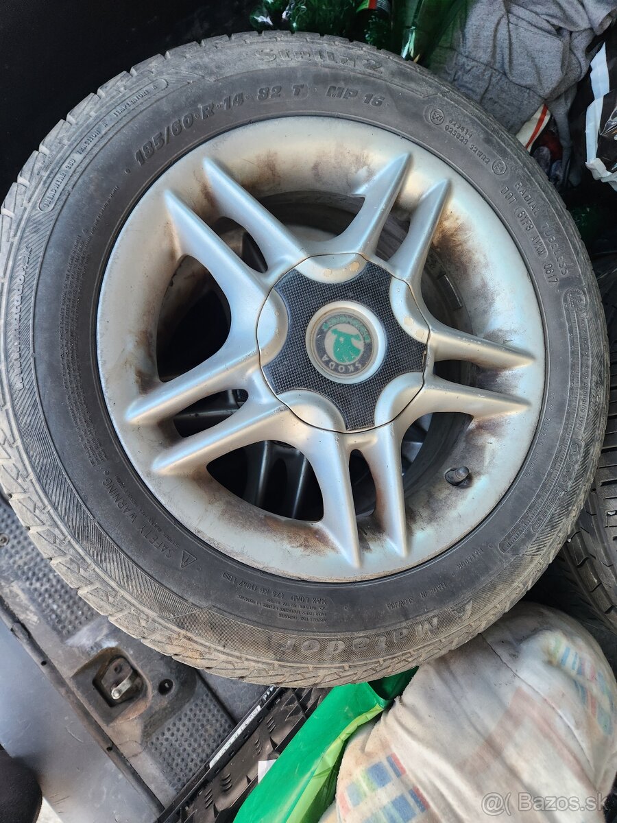 Predam letne pneumatiky na skodu fabiu super stav plus hlinikove dysky