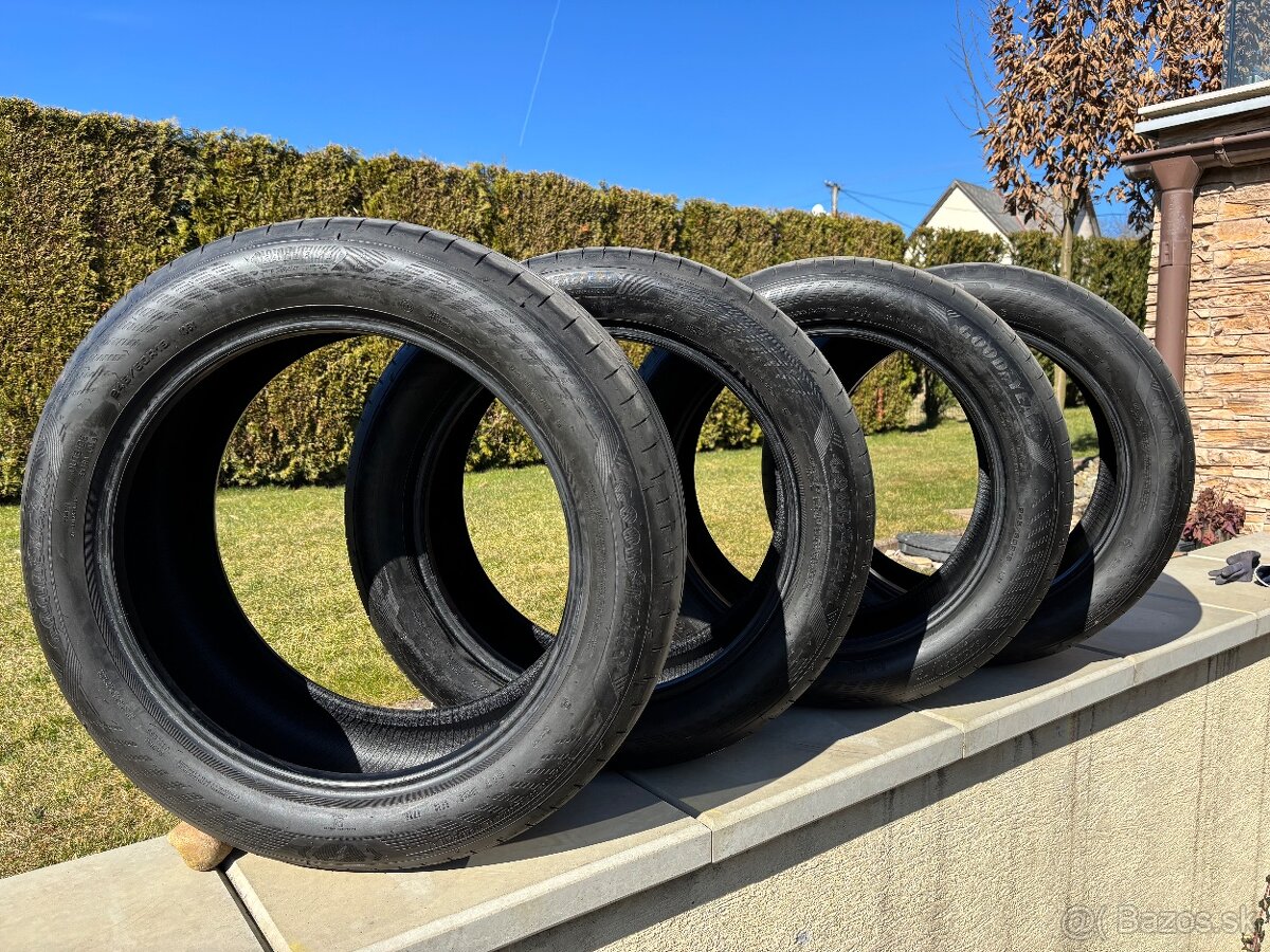Predám pneumatiky Goodyear 245/50 R 19 Eagle F1 asymmetric 6 105 y xl . Na pneumatikách je najazdené 500 km , výška dezénu 7,5 mm , vyrobené v máji 2025 . Sú to letné pneumatiky vhodne pre vozidla BMW . Spotreba paliva trieda :A , priľnavosť na mokrej vozovke trieda :A . Cena za jeden kus 95€ , predávam len komplet všetky štyri pneumatiky za cenu 380 € . Na SMS a email neodpovedám . Len telefonicky kontakt od 8.00do 21. 00