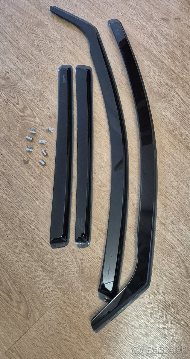 PREDAM DEFLEKTORY PREDNYCH + ZADNYCH OKIEN HEKO. BOLI NA VW GOLF 7 A OSTALI PO PREDAJI AUTA. SU K TOMU AJ 8X PLIESKY. Z JEDNEHO ZADNEHO CHYBA MALY KUSOK Z ROHU ( NA FOTO ), ALE TO NEMA ZIADEN VPLYV, KEDZE JE TO POD KEDROM