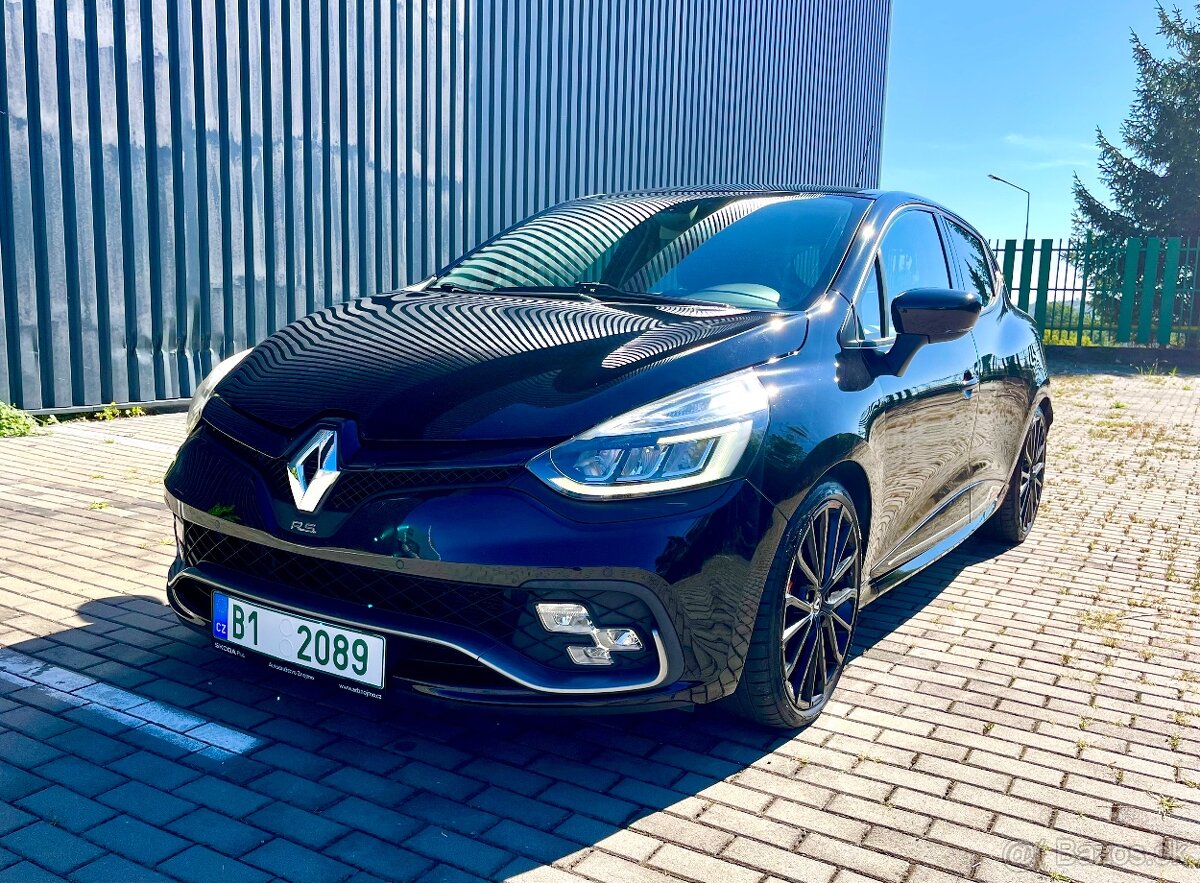 prodám Renault Clio RS 4 generace v nejsilnější verzi TROPHY s motorem 1,6 Turbo s výkonem 220 koní, MR 2017 do provozu 11/2016, najeto 176.000km, automatická převodovka s řazením pod volantem, originální výfuk akrapovič, R.S. drive mode, 18" al. kola, LED světla, hranaté mlhovky, el. okna, el. zrcátka, navigace, handsfree bluetoth, automatická klimatizace, přední a zadní parkovací senzory, parkovací kamera, bezklíčové odemykání zamykání a startování, tempomat s omezovačem, prémiové muzika, senzor světel...