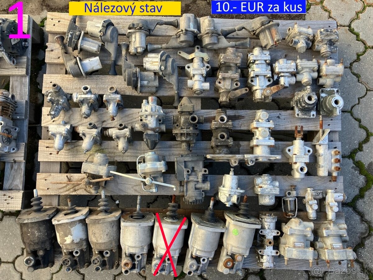 Predám po garážmajstrovy náhradné diely do nákladných aut, štartery, alternátory, kompresory, valec motora, vzdušný ventil, posilovače, vstrekovacie naftové čerpadlo, bufík, servo riadenie, brzdové obloženie, spojková lamela, ojnica, výfukové potrubie iné podľa priložených fotografií.