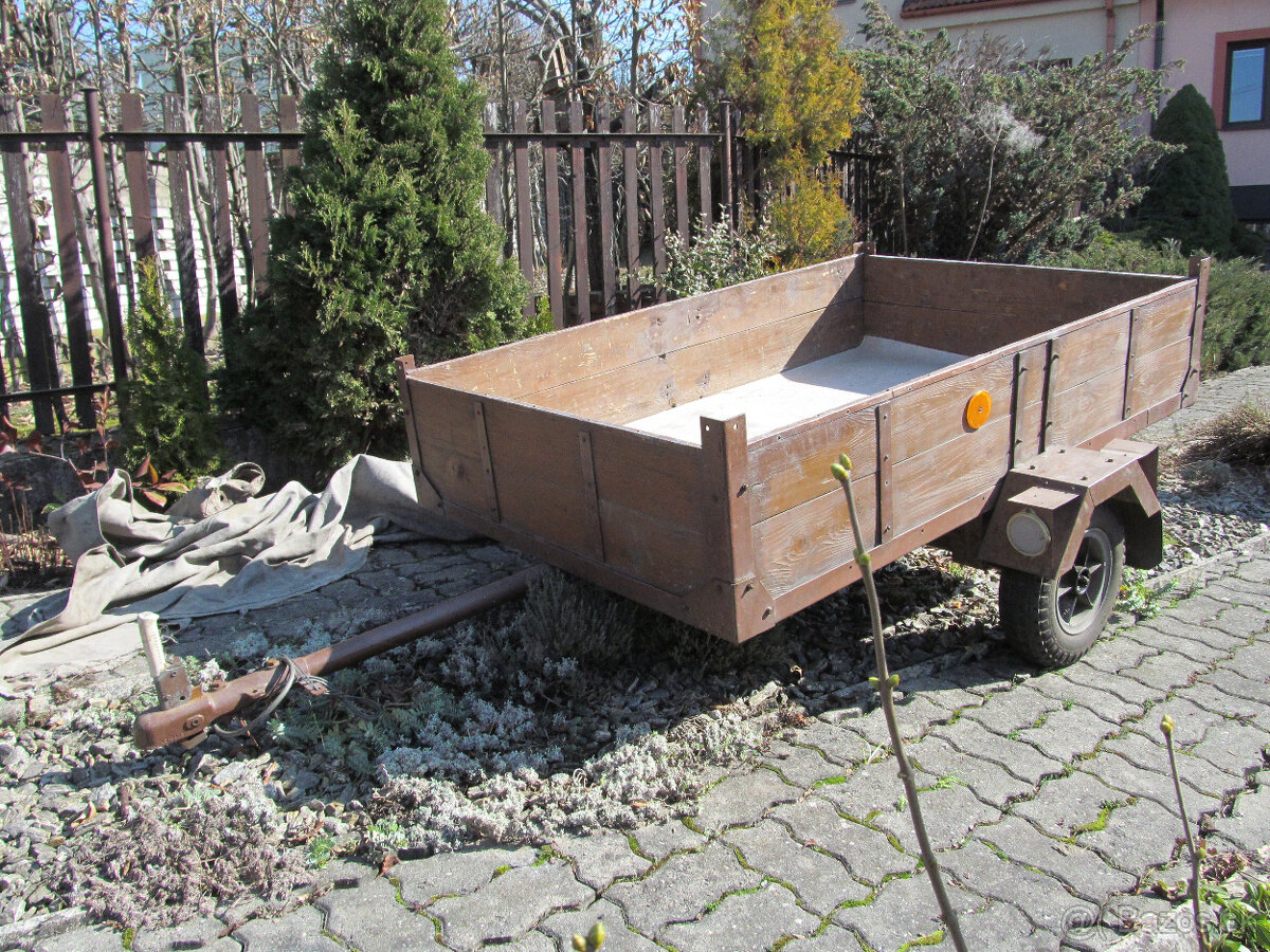 Prívesný vozík - [10.3. 2026]Predám používaný,funkčný prívesný vozík domácej výroby hnedej farby s rozmermi ložnej plochy šírka:116cm,dĺžka:145cm,