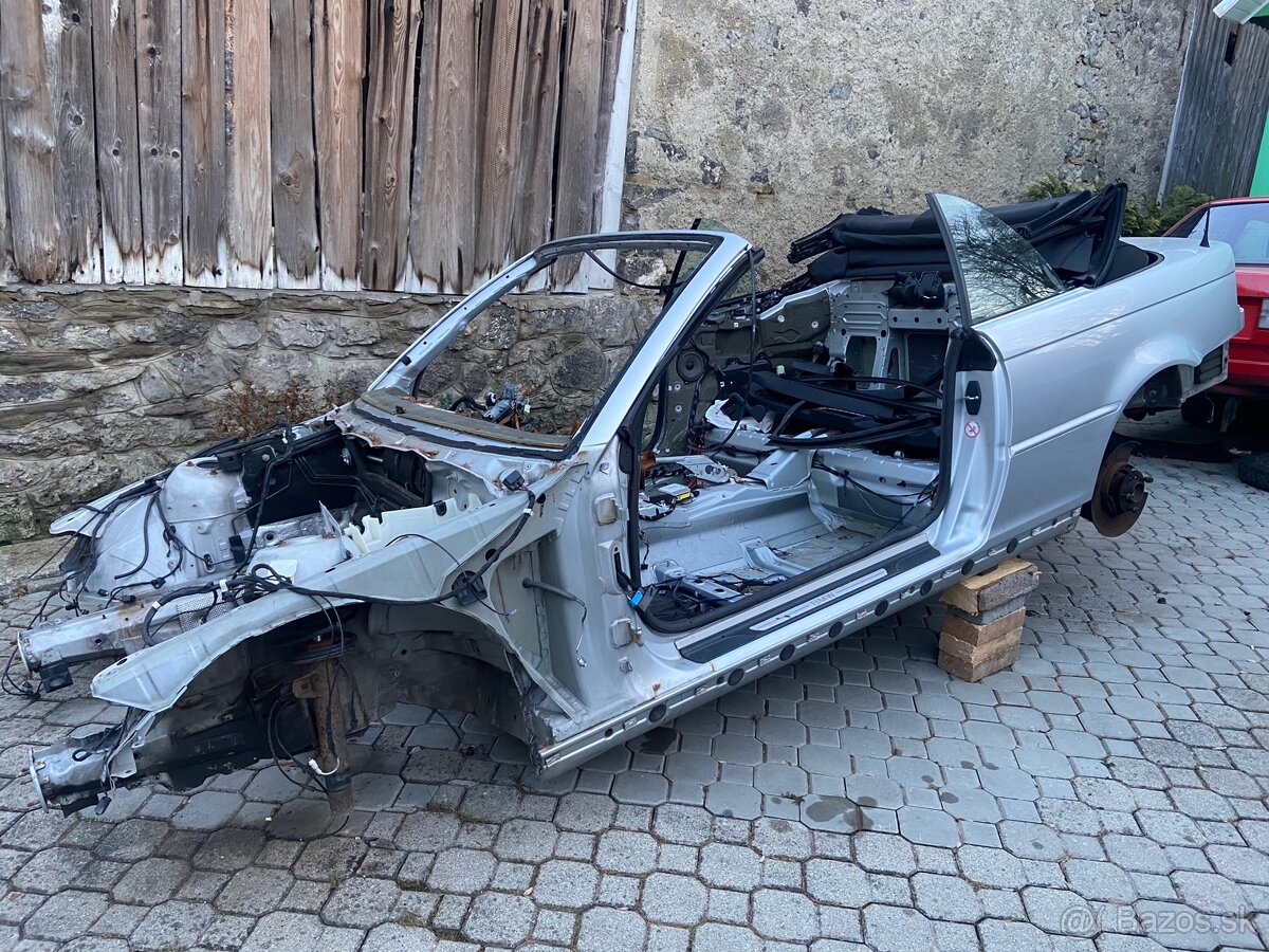 Predám kasňu e46 cabrio 330ci, veľmi zdravá, všetky zdvíhacie body s gumami na mieste, zadná nápravnica nevytrhnutá, sú na nej polyuretány, karoséria originál predfl. Cena uvedená za karosériu bez strechy a kufru. Ak sa nepredá v celku a mal by niekto záujem o výrezy poprosím správu. Naloženie bez problémov poprípade viem po dohode doviesť.