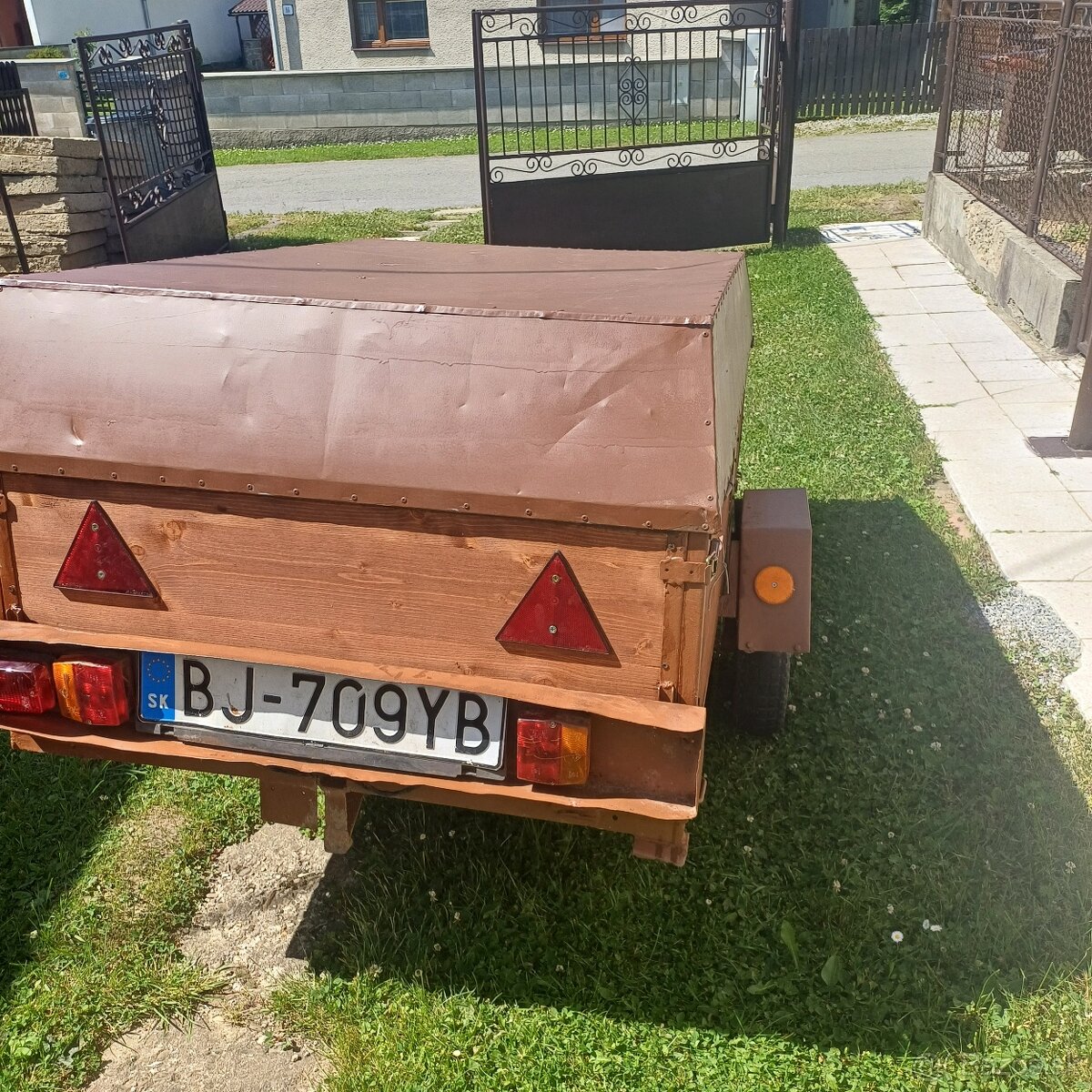 Prívesný vozík - [10.3. 2026]Predám používaný,funkčný prívesný vozík domácej výroby hnedej farby s rozmermi ložnej plochy šírka:116cm,dĺžka:145cm,