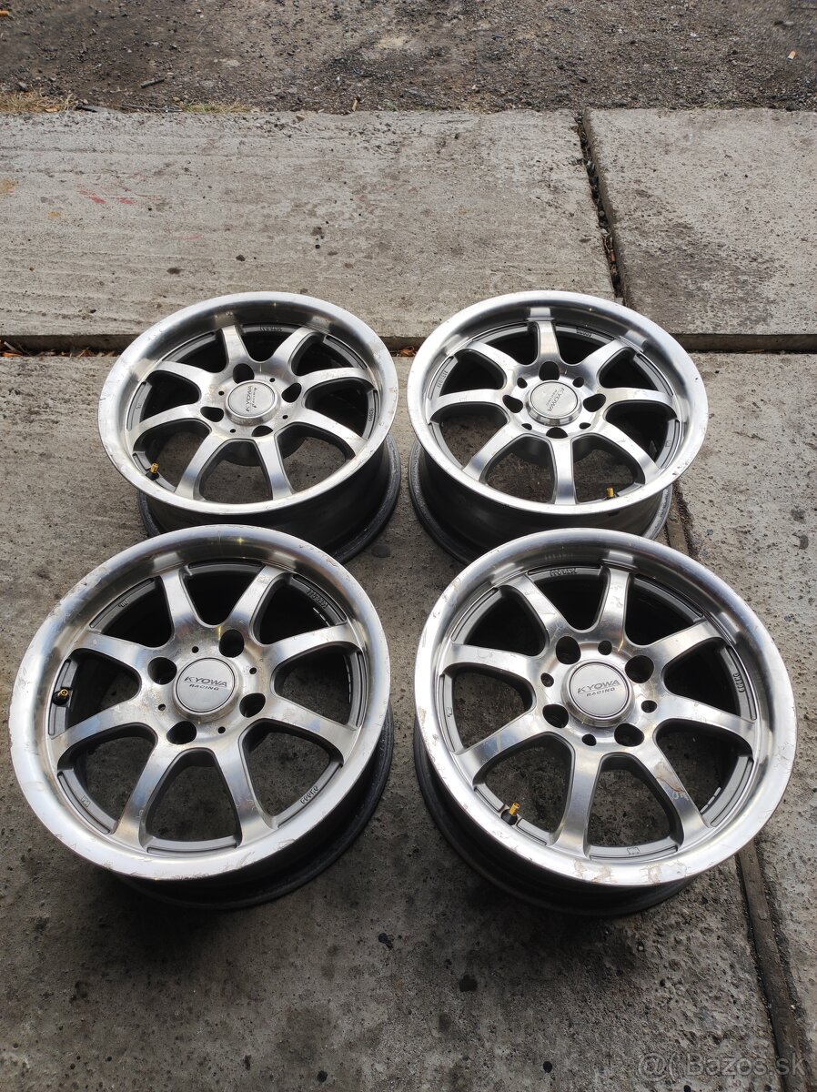 Predám elektróny Kyova racing r14, 6j, stredová diera 73,4×108 ,et20,známky používania sú ale iba estetické(krivé nie sú)