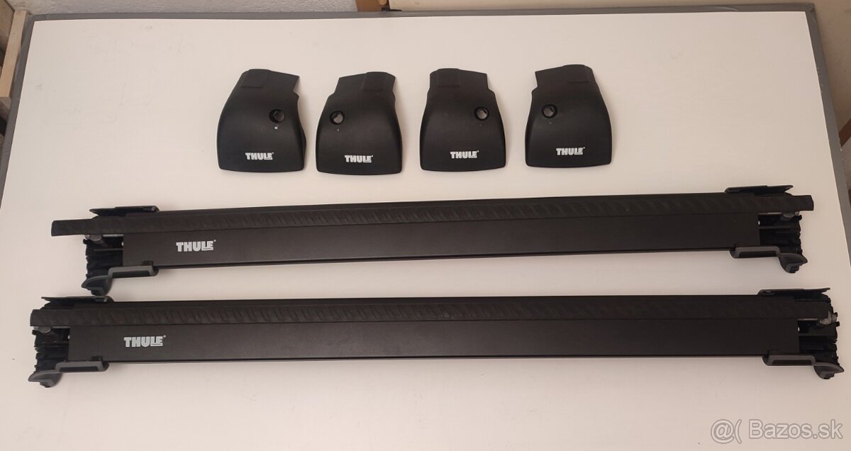 Strešný nosič Thule, nový, nepoužitý, bez zámku. Potrebné dokúpiť nadstavec pre dany typ auta. Maximálne a minimálne rozteče uchytenia nosičov: predny 111/101, zadný 102,5/93,5 cm. Thule WingBar Edge 9594B.