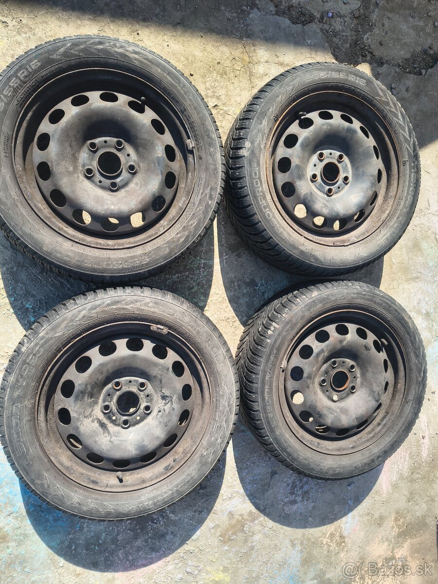 Predám plechové disky r16 spolu s pneumatikami, disky sú vw, škoda. Pneumatiky boli kupované 1/22 majú ešte dobrý dezén. Pneumatika značky Nokian seasonproof celoročné. Cena 100€ za všetko.