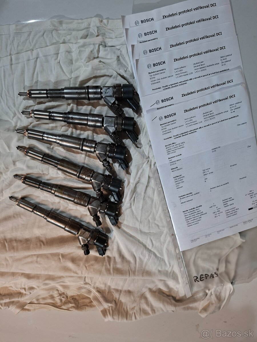 Predám vstrekovače z bmw motora M57 135/142kw 306d1 0445110047 7785984 otestované, vyčistené, vymenené špičky a vnutornosti pripravene na pouzitie v aute boli par km plne funkčné s protokolmi cena za kus 130€ ku každému vstreku je protokol, zoservisovane, plne funkčné.. mam k dispozícii 5kusov cena spolu 600€