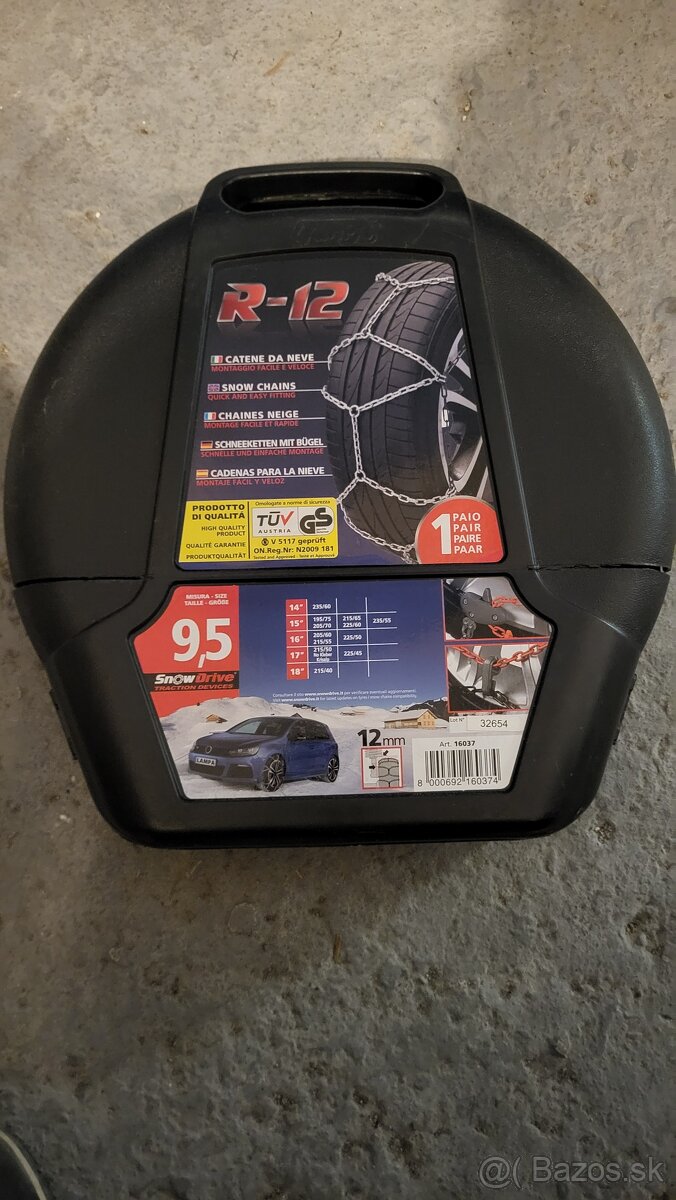 Predeam snehove retaze SnowDrive R-12. Pouzite 3krat. Rozmery vhodnych kolies viditelne na fotkach.
