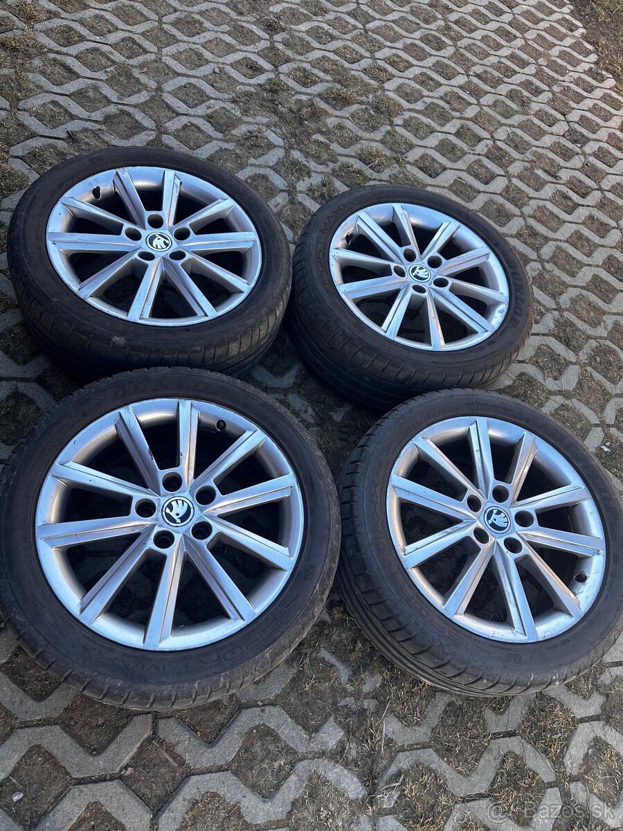 Predám sezónu jazdenú letnú sadu 225/45 R17 na originál elektronoch Škoda 5x112 R17 Pneu Dunlop SportMaxx DOT každej je 0323 ..dezén 6-7mm skoro ako nové bez poškodenia…boli na škoda octavia 3..uprednostňujem osobný odber.