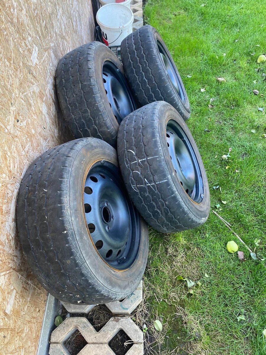 Na predaj plechové disky z citroen jumpy R16. Pneumatiky su uz dosť zjazdené.