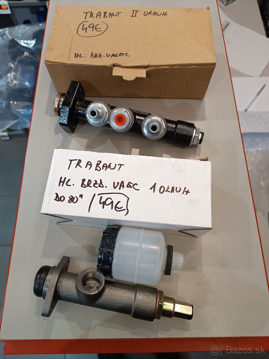 Ponúkam na predaj hlavne brzdové valce na Trabant 1 okruhový 49€ alebo 2 okruhový 49€ valce sú nové.