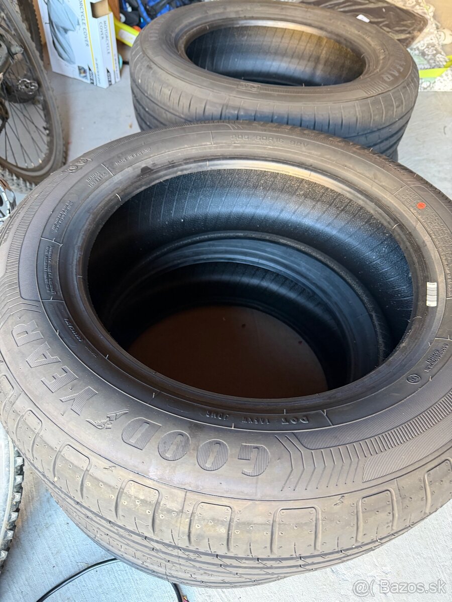 Predám nepoužitu sadu 4 letných pneu Goodyear 205/60 R16. Dôvod predaja: z nového auta, ale nepotrebujem. Mám celoročné. Nové stoja 125€/kus.