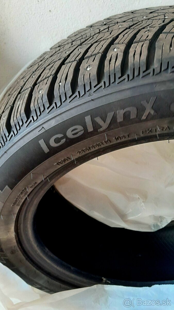 Predám 4ks Triangle Icelynx zimné pneu s hrotmi, bez diskov, rozmer 235/55 R19, občas jazdené na Audi Q5. Sú stabilné na všetkých povrchoch, najmä na snehu a ľade vďaka 252 hrotov auto drží stopu ako priklincované. Tvar behúňa je v tvare "V". Kontaktná plocha s vozovkou je optimálna pre lepšie rozloženie tlaku, čo zvyšuje priľnavosť a stabilitu, najmä v zákrutách. Dizajn klincov bol zľahčený, aby sa znížil kontakt s cestou, zatiaľ čo umožňuje lepšiu brzdnú schopnosť.