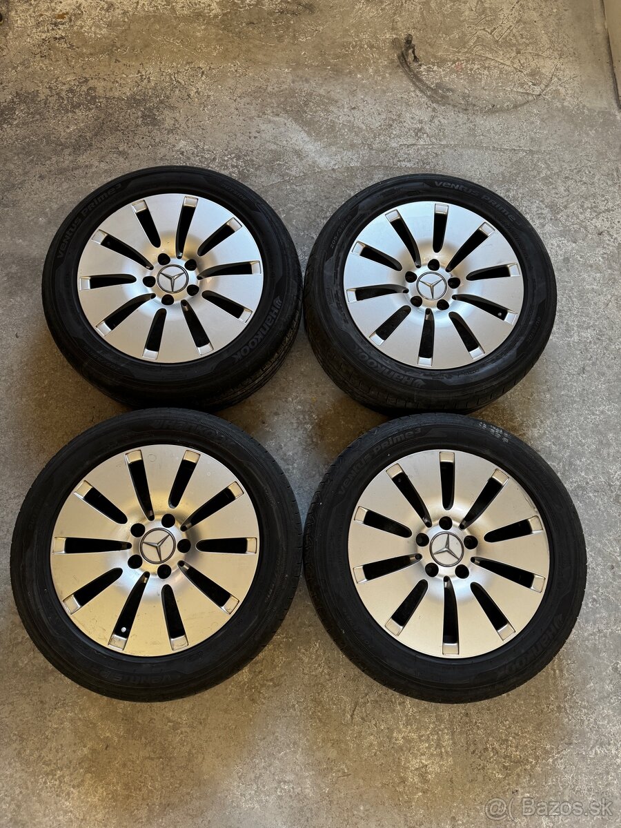 Predám originál hliníkové disky Mercedes rozteč 5x112, priemer 16, 6,5x16 ET38. Disky obsahujú funkčné merače tlaku a letné pneumatiky hankook ventus prime s cca 5 mm dezenom.