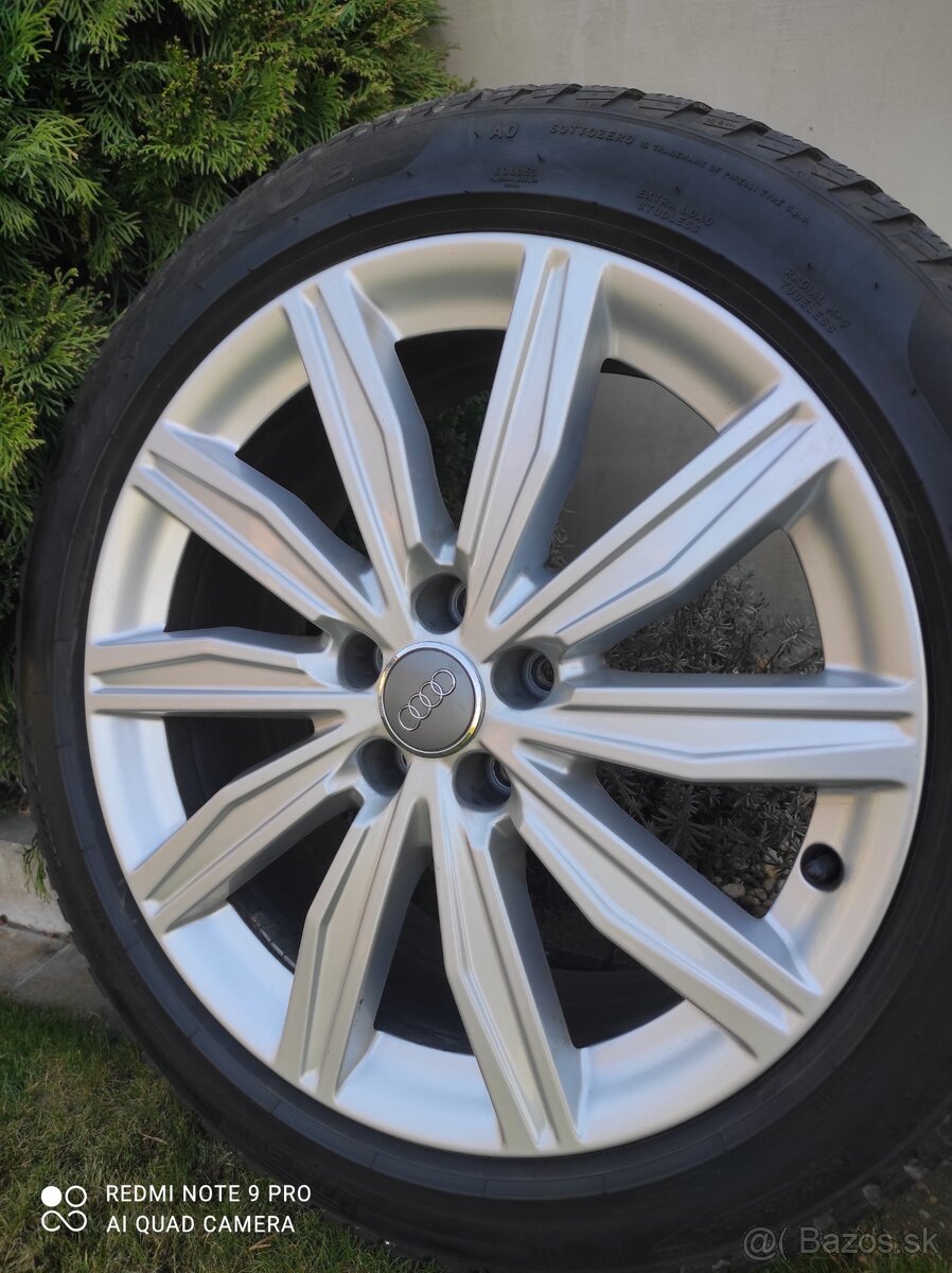 Predám elektróny originál Audi A6.Elektrony majú rozteč 5x112 r19 ET39.Su v dobrom stave.Cena za samotné elektróny je 439 eur.Obute sú na pneumatikách Pirelli 245/45 r19 s dezénom 6 mm.DOT.2024.Cena za pneumatiky je 29 eur/kus.Pasuju na na Audi A6,A4,Mercedes,Vw....