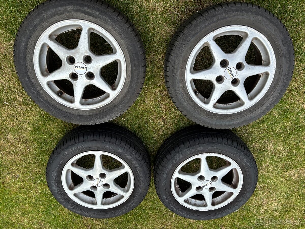 Sada kolies - [22.3. 2026]Predám 4x pneumatiky matador 195/55 R15 (letný dezén 3-3,5 mm) na päťlúčových elektrónoch 5x100;stred 57,1 mm. Rozmer disku 6Jx15 H2 ET38. Hliníkové elektróny českej výroby, v slušnom stave. Používané na Passat B4.