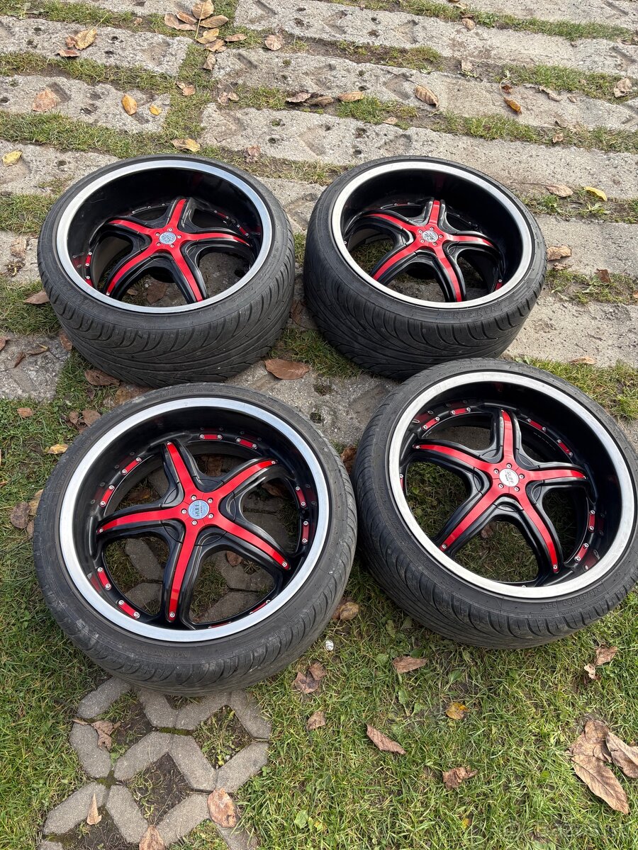 Dobrý deň. Predám sadu kolies značky RUF Racing. 2x 8,5J ET35, 2x 10J ET 45. Stredová diera 70,6mm ale sú k ním aj krúžky na 66,6. Taktiež pridávam aj podložky. Gumy: 245/35 a 275/30. Gumy v dobrom stave. Malo jazdené. Boli na Cls w219