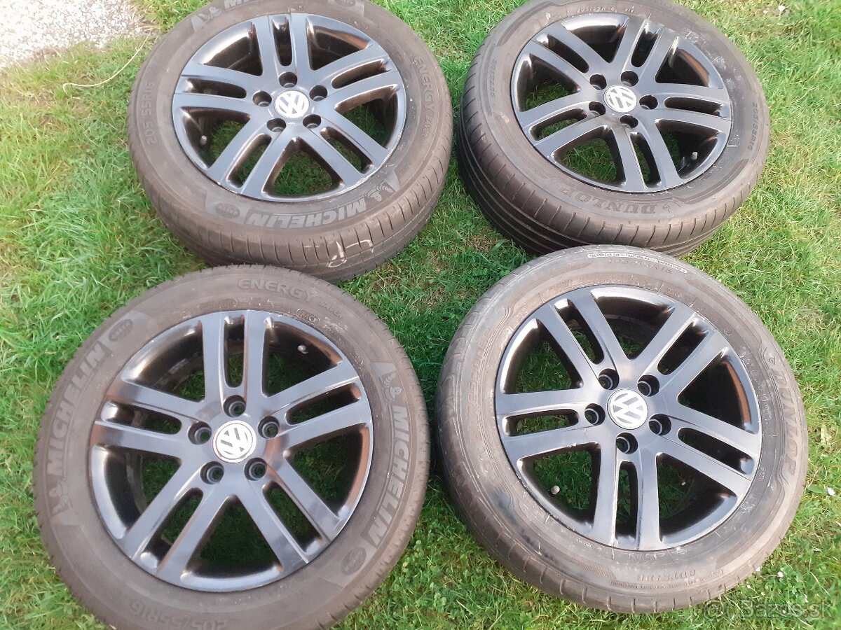 predam alu disky VW 5x112 6,5Jx16 et50 letne 205/55 r16 2xMichelin a 2xDunlop,cena 320,-/sada
