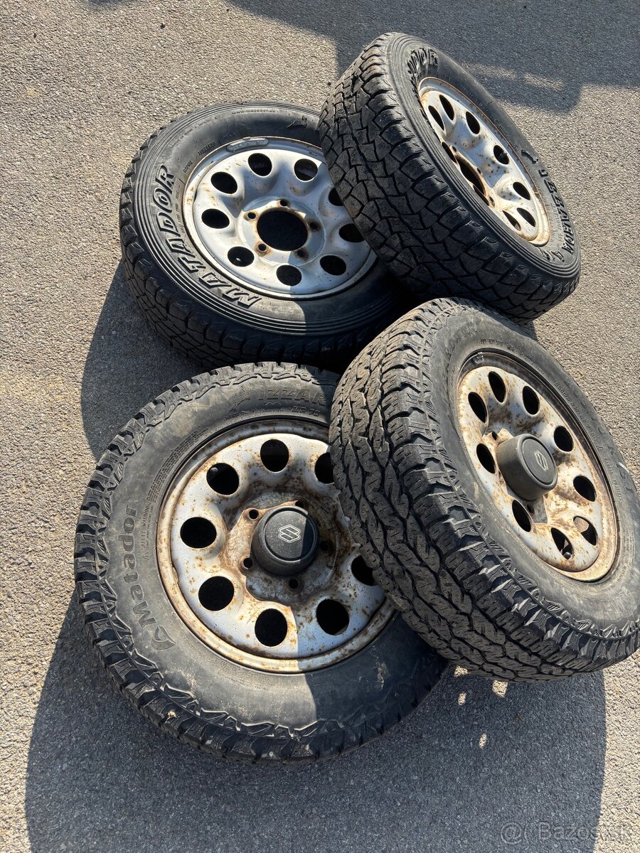 Zdravim mam na predaj tieto celoročne pneu aj s diskami pneu 205/70R15 disky 5x139,7 suzuki vitara jimny samurai v pripade zaujmu volať