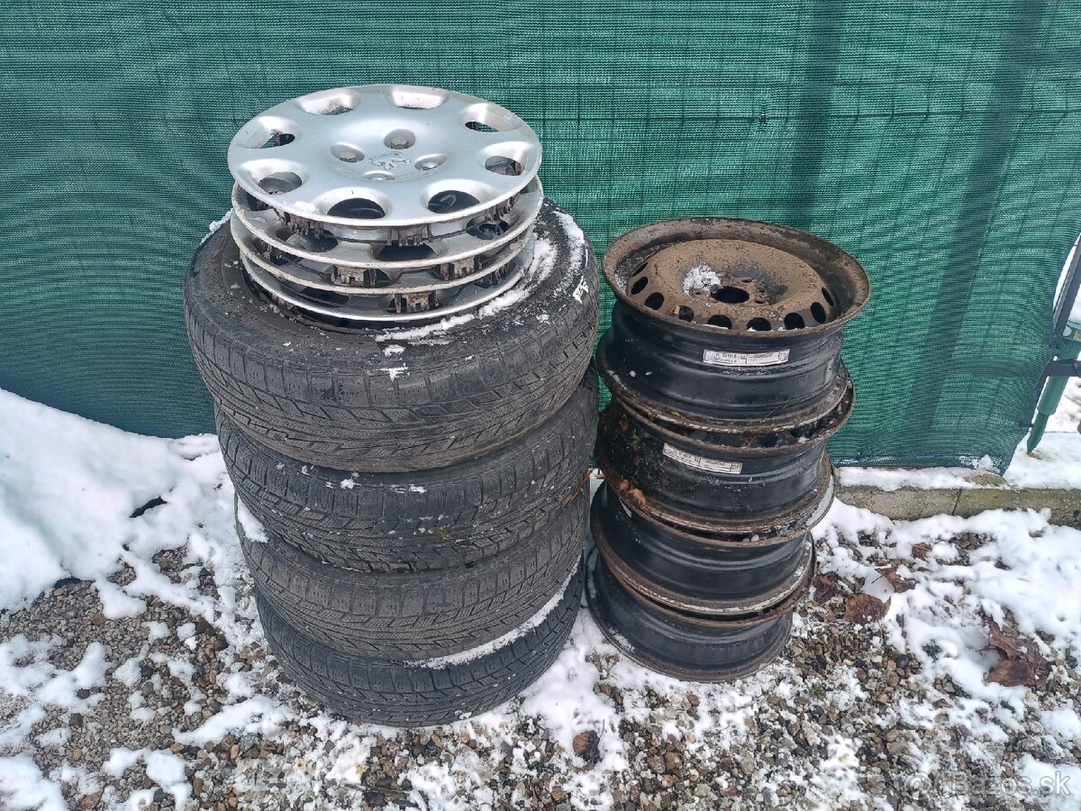 Predám 8 kusov diskov s pneumatikami, rozteč je 5,1/2J-14H2, vhodné na Peugeot 206 , Fiat Punto a podobne. Cena všetko spolu za 50€.