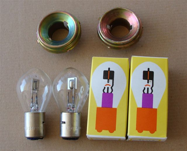 Predám nepoužité auto-moto žiarovky 12V/35watt,alebo 12V/45 watt.Mám aj moto žiarovky 6V/25 watt,alebo 6v/35 watt.Starý typ patice,povodná výroba,nie novodobé úbohé napodobeniny.Cena 2 eurá za kus,redukčné krúžky-5 eur/ks