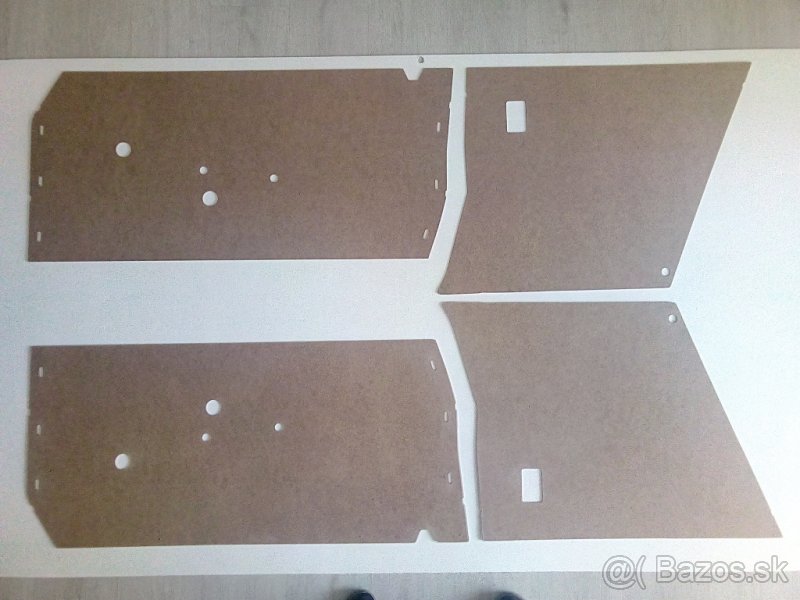 Predám tapacíre dverí a boky pod bočné okná na š 110 R. Materiál je sololit orig. hrúbky 2,5 mm.