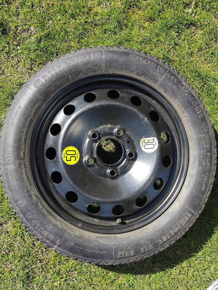 Predám rezervu dojazdove koleso R16 continental T115/90 R16 5-dierove rozteč 5x112 vhodné na VW ,Škoda, Audi,Mercedes a ďalšie treba skontrolovať rozteč, koleso je ako nové, osobný odber, pozrite aj moje ostatné inzeráty