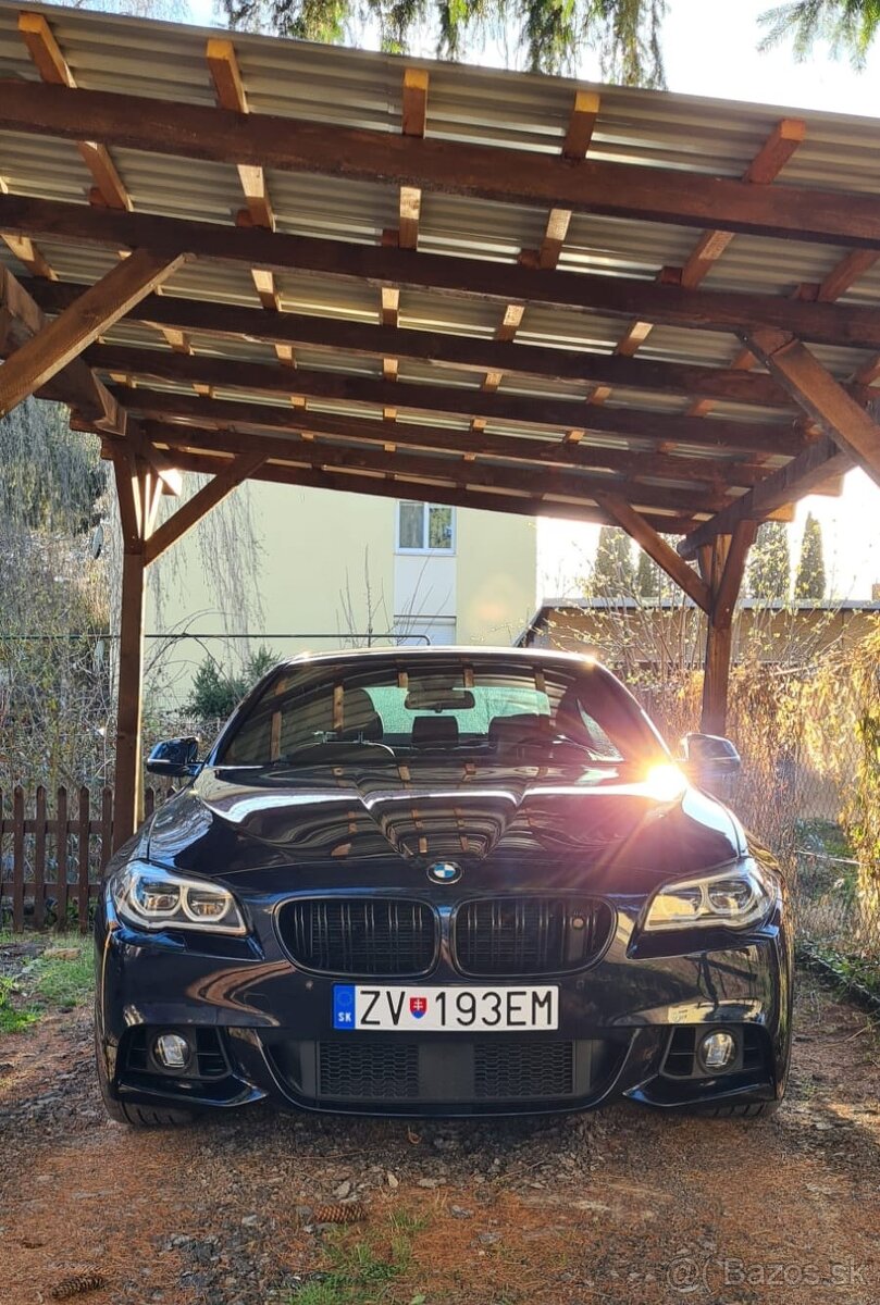 BMW rady 5 generácie F10 s takmer maximálnou možnou výbavou. Sériovo Luxury Line - prvým majiteľom namontovaný exteriérový M-Paket (pekne zlícovaný, nie z poľských dielov). Samotné prvky výbavy: M paket exteriér, nočné videnie, Head-UP displej, 360° kamera, adaptívny tempomat, elektrický kufor, interiér v koži nappa (mocca) s plne elektrickými pamäťovými ventilovanými prednými sedadlami, zadné sklápateľné s lakťovou opierkou s cup holdermi, úložným priestorom. Vozidlo má prémiovú hudbu HammanKardon, Antracitový strop so strešným oknom, lakovaný atypický drevodekor s chrómovou líniou, samostmaviteľné spätné zrkadlá (vonkajšie aj vnútorné), 4 zónová klimatizácia, ambientné osvetlenie. , Na jazdu vplýva M-Paket vyhrievaný a elektricky nastaviteľný volant, športová 8st. prevodovka ZF, adaptívny podvozok s voľbou režimov (eco, comfort, sport a individual)., Samozrejmosťou pre rad 5 sú výbava ako parkovacie senzory, automatické diaľkové svetlá a podobné základné prvky, ktoré tu skutočne nie je potrebné samostatne vypisovať. Jedná sa o prémiovú značku s odpovedajúcou výbavou.