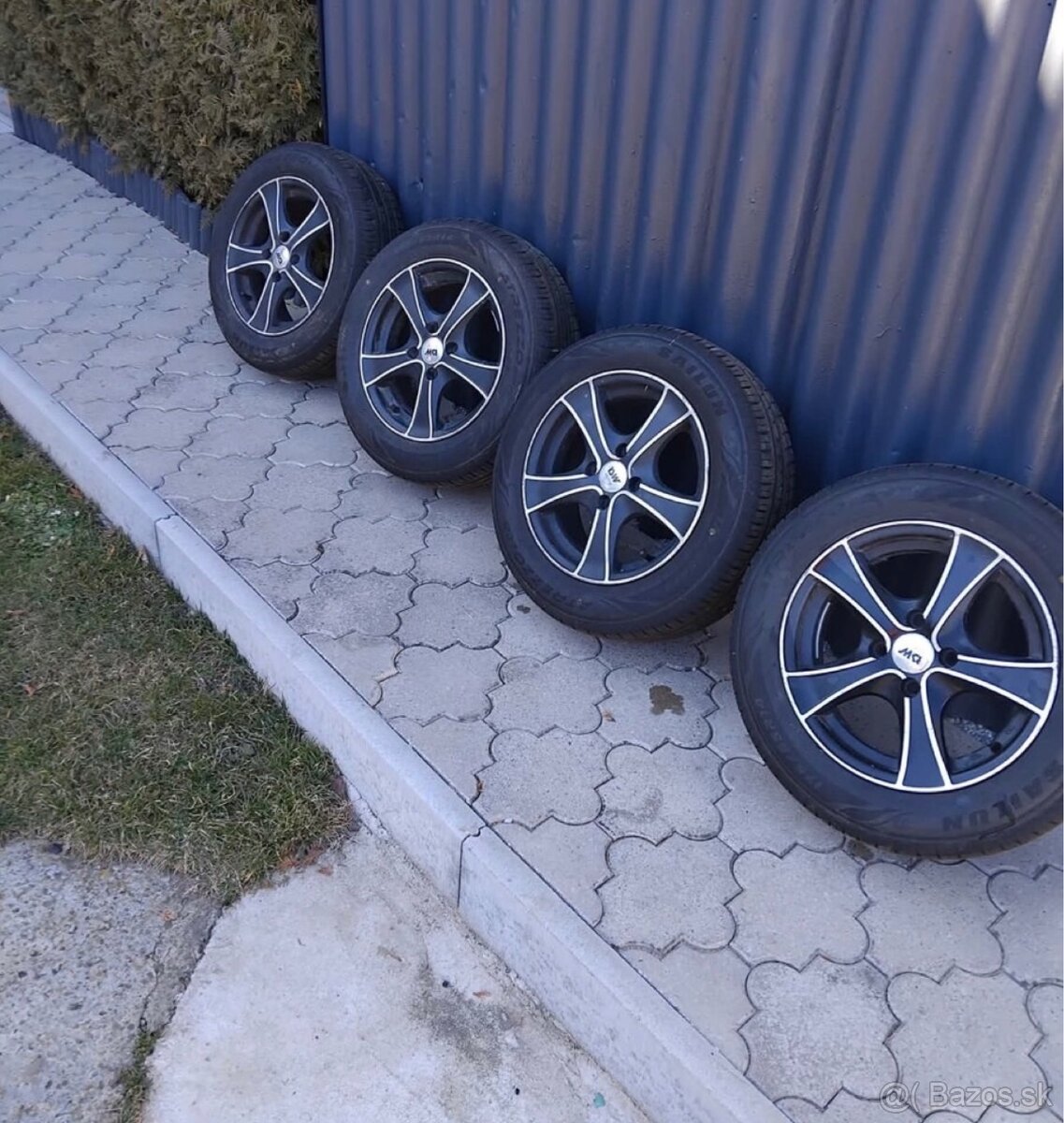 Predam hlinikove disky v top stave s novymi letnymi pneu. Rozmer na foto. Su z Opel Corsa 4x100 . Cena 150€